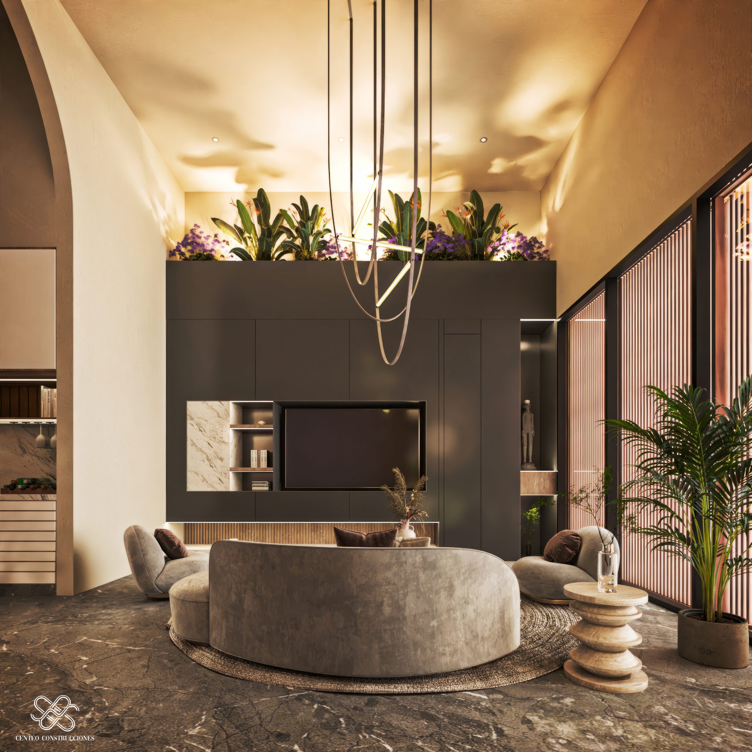 contemporáneo con toques mediterráneos se distingue por su estilo Wabi Sabi con