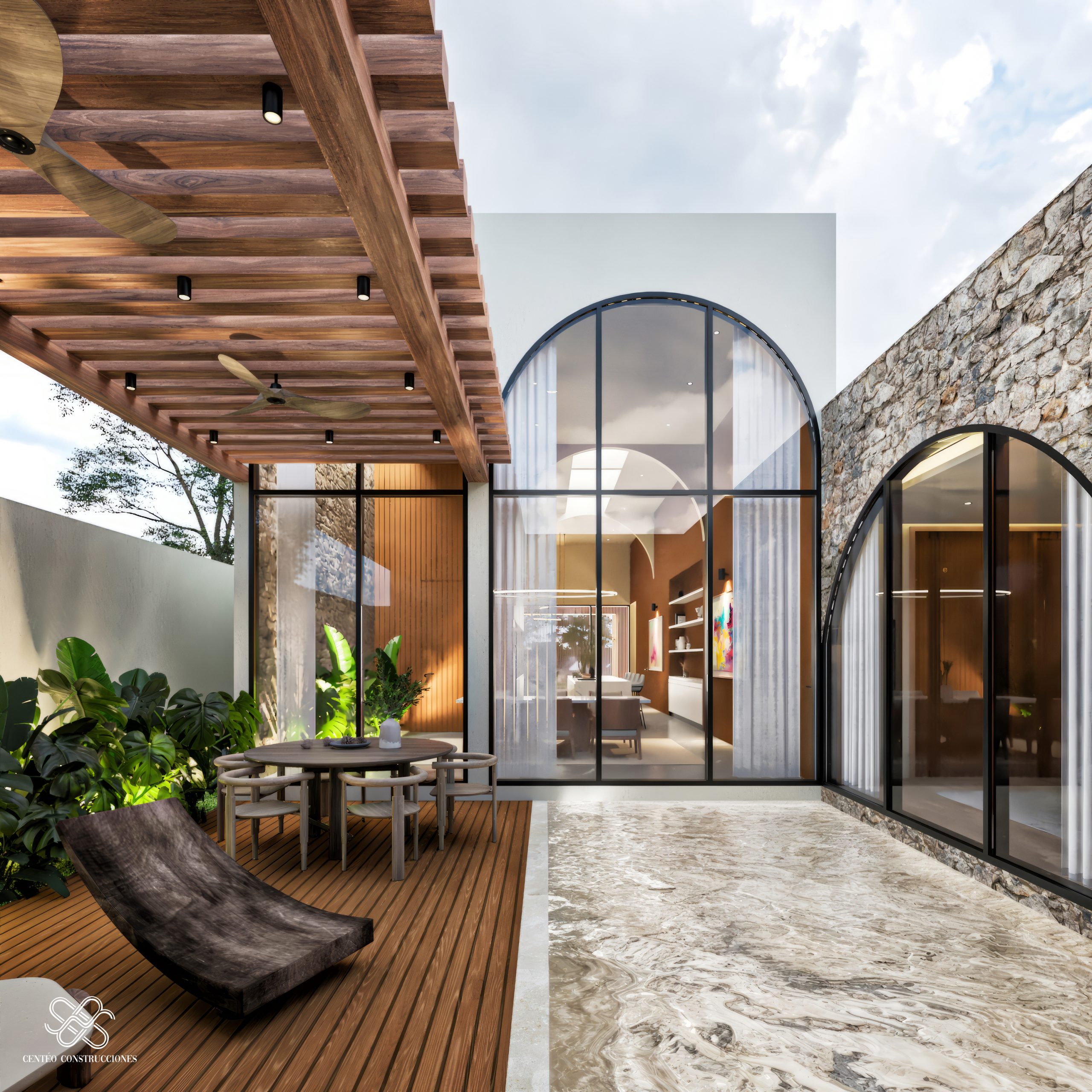 dobles alturas , pronunciadas curvas ,acabados en chukum , piedra natural y amplias
