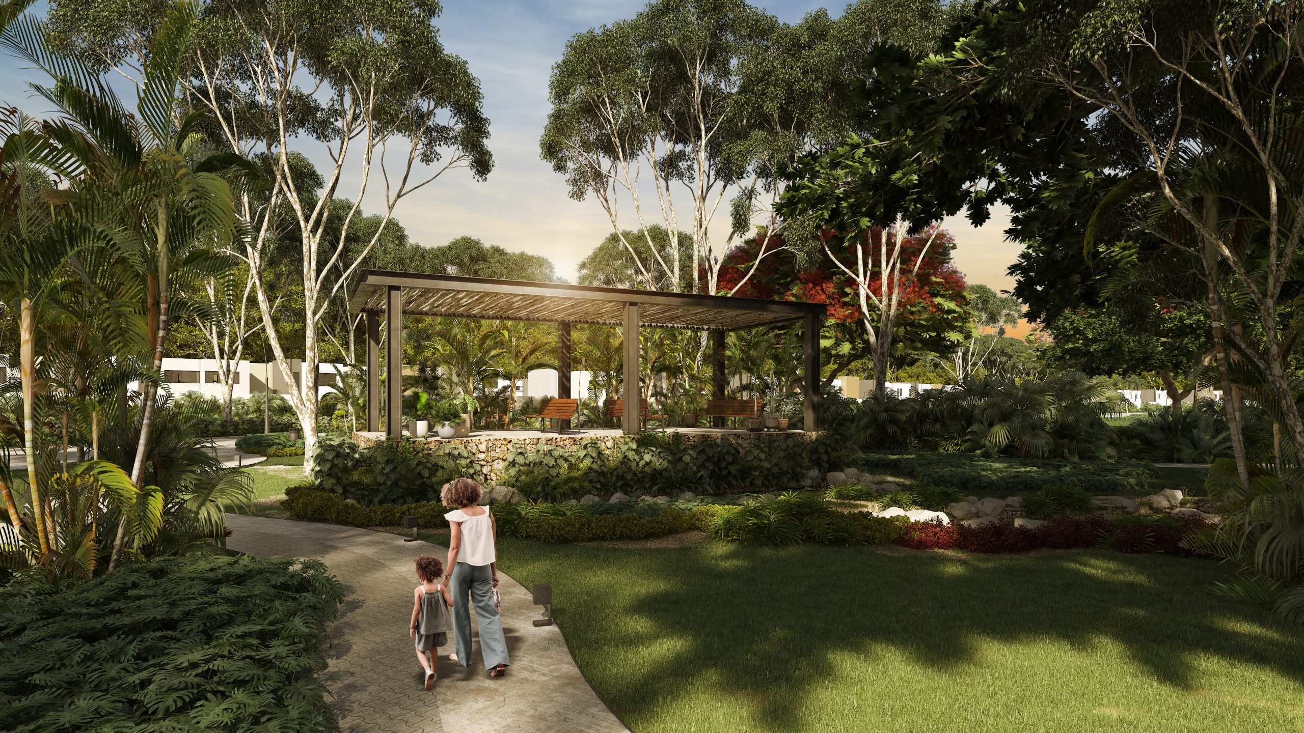 La primera comunidad planeada y sustentable en la zona de mayor plusvalía en Mérida y donde más del 64% del terreno son áreas verdes y áreas comunes.