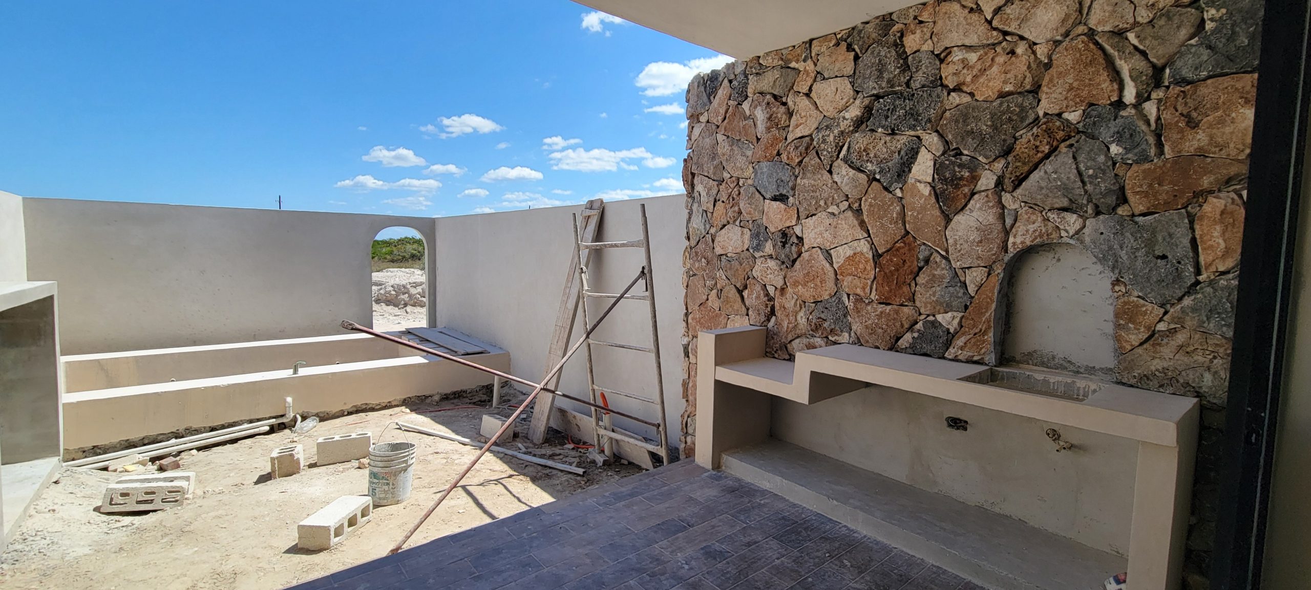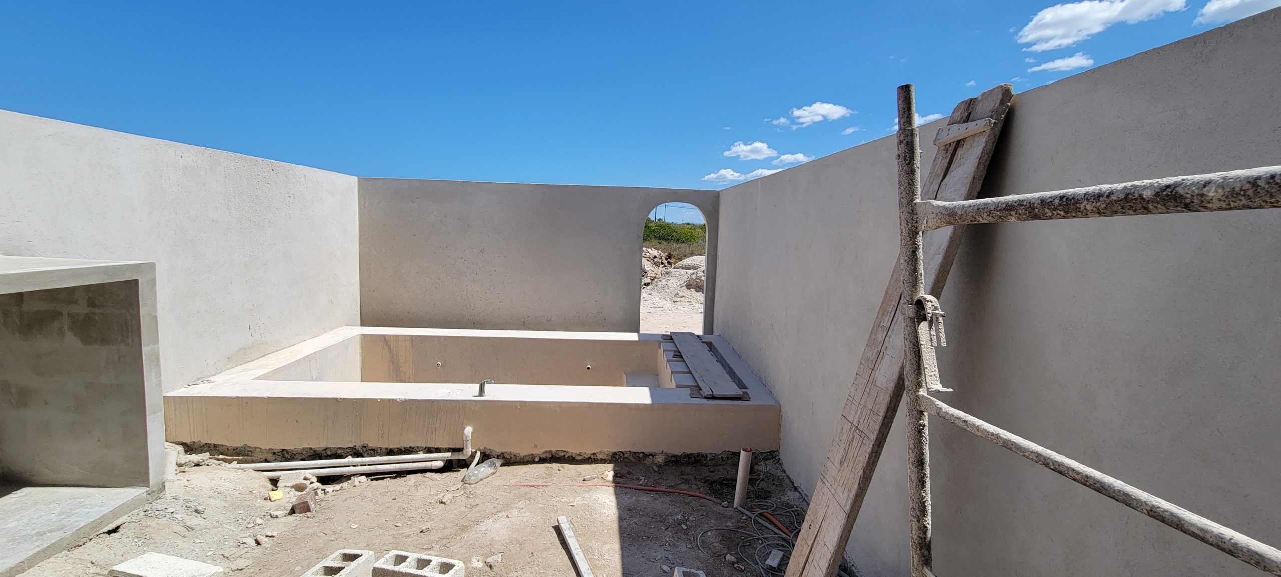 bovedilla con acabados de cemento y polvo en interiores y exteriores para una