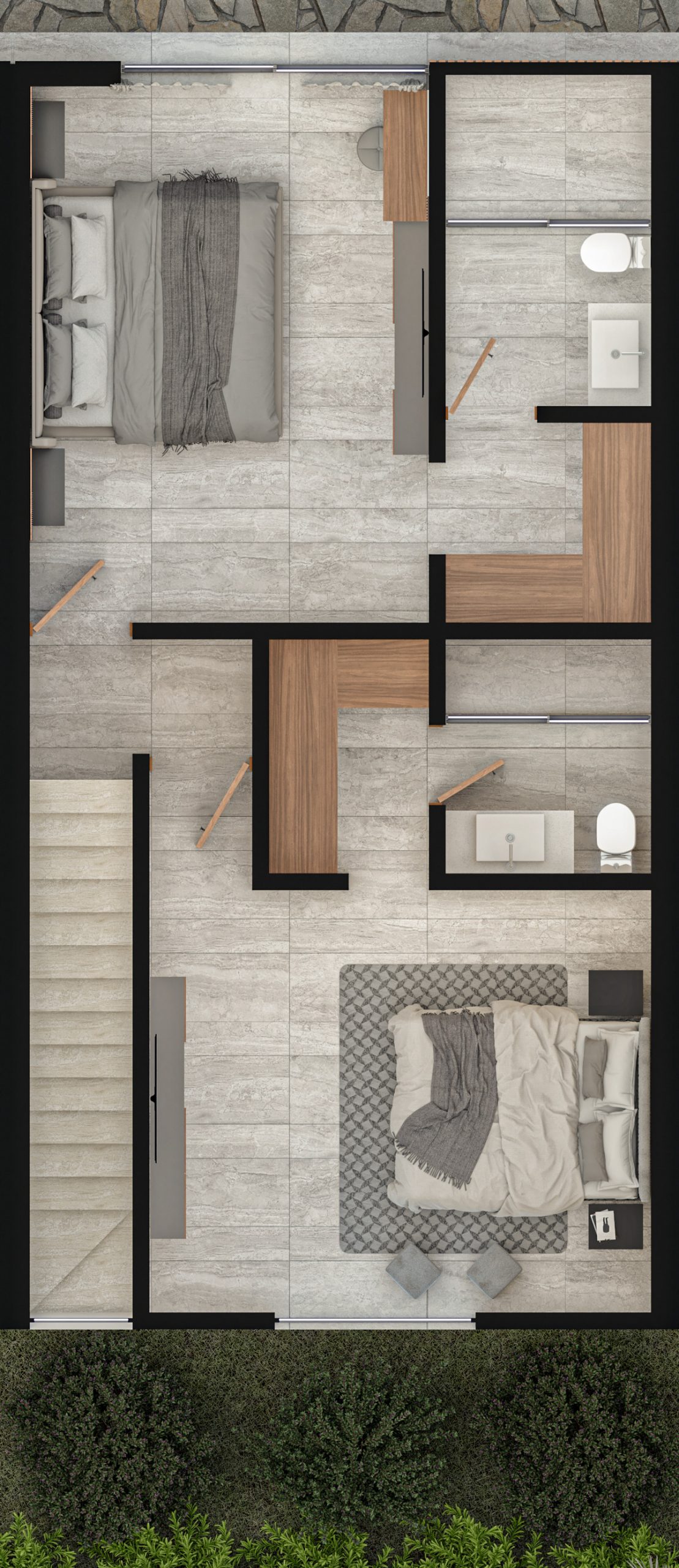 Los Town Houses 1 y 8 cuentan con un jardín más amplio.
